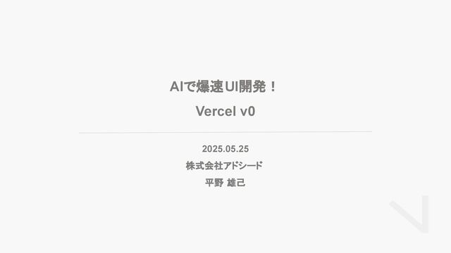 AIで爆速UI開発! Vercel v0 2025.05.25 株式会社アドシード 平野 雄己