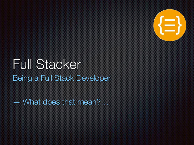 frontend dev? A backend dev? Both? That tends to get HR and project managers really confused, BTW… My manager even said: You have to decide! The term fullstack didn’t exist yet So what am I?