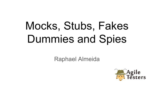 Learn to makr your tests easier, fast and lean using mocks, stubs, fakes, dummies and spies.