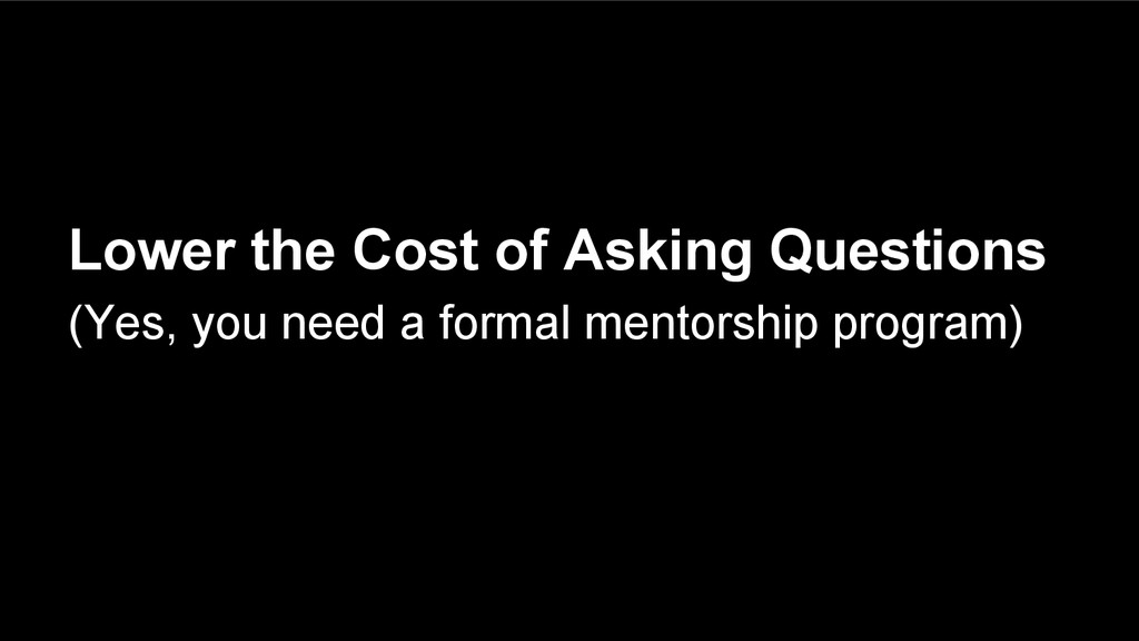 and resources to support her? - What kind of training can we offer our experienced devs so that they might become better mentors? - How can we help our new hire be a better mentee