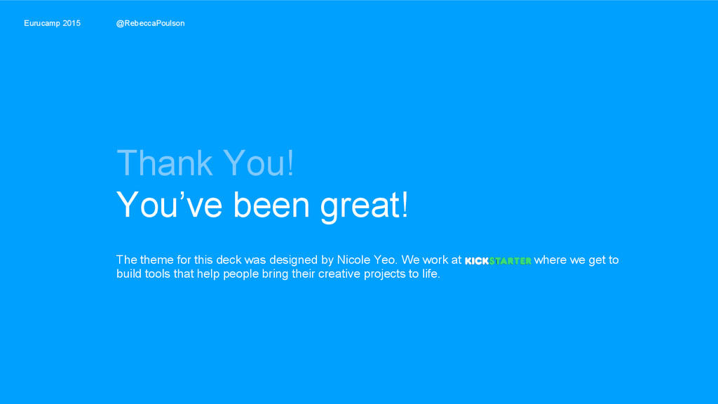 was designed by Nicole Yeo. We work at where we get to build tools that help people bring their creative projects to life. Eurucamp 2015 @RebeccaPoulson