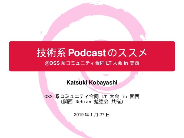 [OSS 系コミュニティ合同 LT 大会 in 関西](https://debianjp.connpass.com/event/114929/)にて発表した、技術系Podcastを配信しようという話です。