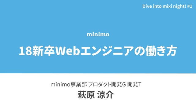 18新卒Webエンジニアの働き方 minimo事業部 プロダクト開発G 開発T 萩原 涼介 Dive into mixi night!