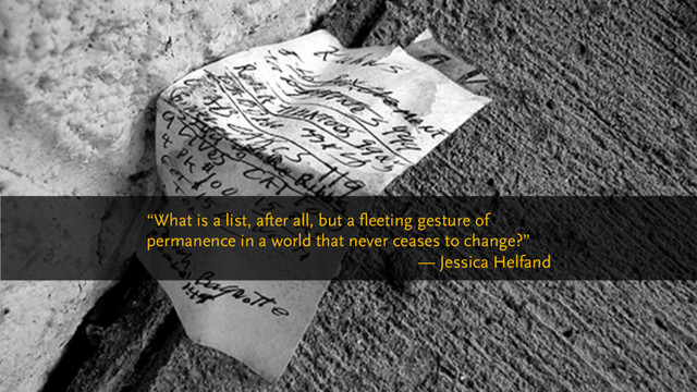 “What is a list, after all, but a fleeting gesture of permanence in a world that never ceases to change?”
