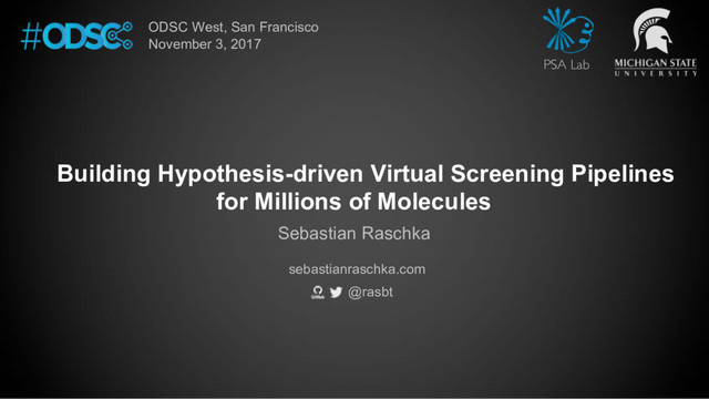 big databases: Screenlamp and its application to GPCR inhibitor discovery for invasive species control (2017). Raschka S., A. M. Scott, N. Liu. S. Gunturu, M. Huertas, W. Li, and L. A. Kuhn JCAM (manuscript under revision) https://psa-lab.github.io/screenlamp