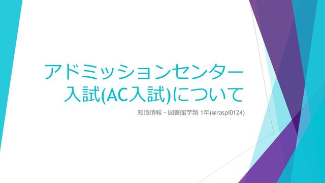 アドミッションセンター 入試(AC入試)について 知識情報・図書館学類 1年(@raspi0124)