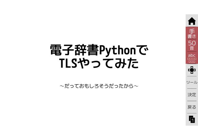 1. 自己紹介 2. 今回やったこと 3. 動機 4. 電子辞書Pythonとは 5. TLSとは