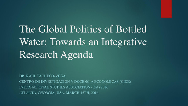 Agenda DR. RAUL PACHECO-VEGA CENTRO DE INVESTIGACIÓN Y DOCENCIA ECONÓMICAS (CIDE) INTERNATIONAL STUDIES ASSOCIATION (ISA) 2016 ATLANTA, GEORGIA, USA. MARCH 16TH, 2016