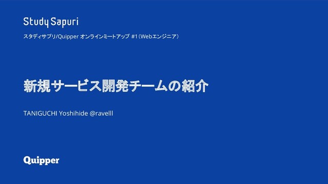 #sapurimeetup スタディサプリ/Quipper オンラインミートアップ #1 新規サービス開発チームの紹介 TANIGUCHI Yoshihide @ravelll スタディサプリ/Quipper オンラインミートアップ