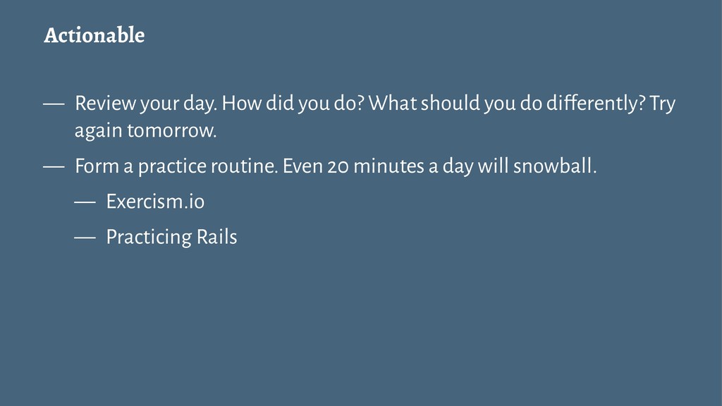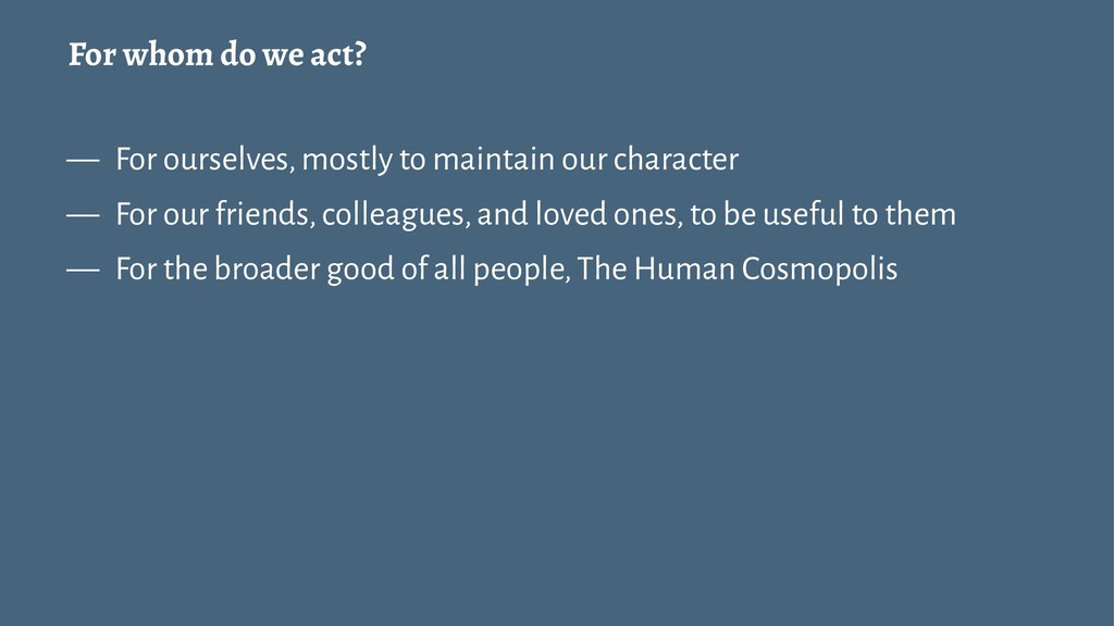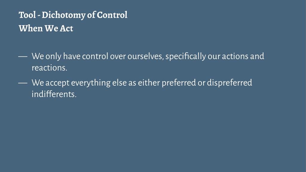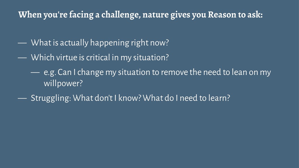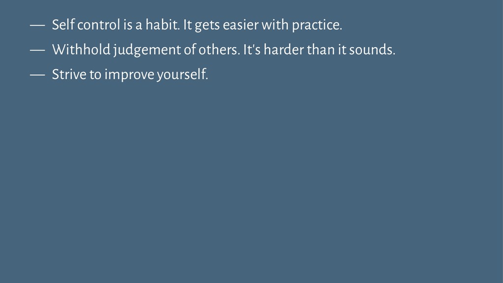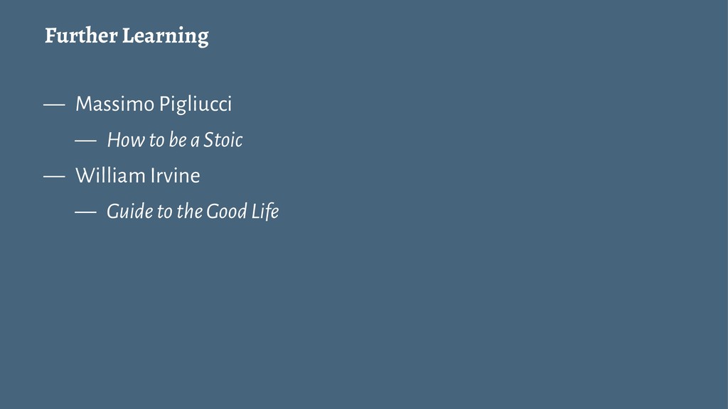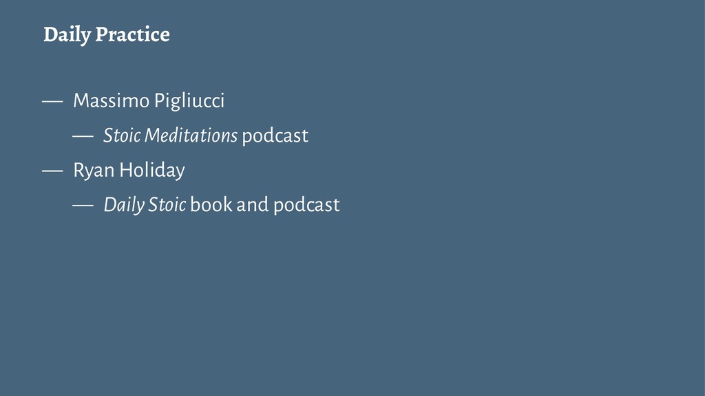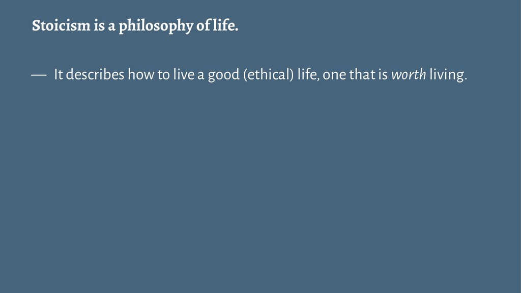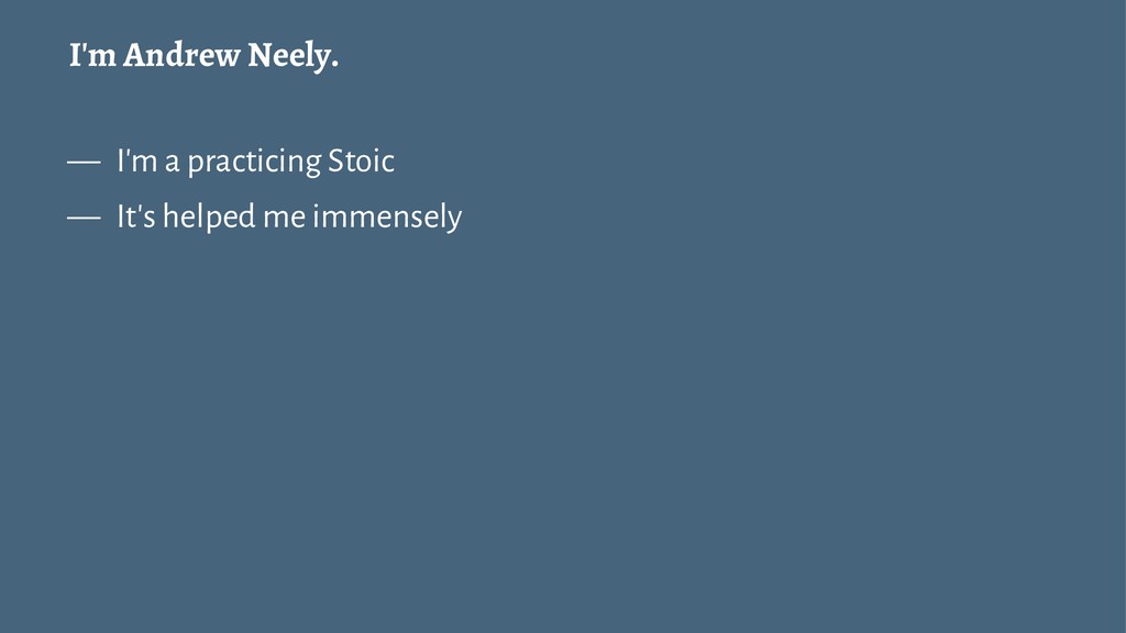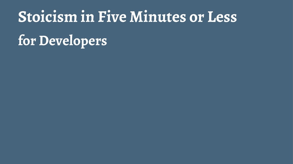 These are the slides for a Lightning Talk I gave at RailsConf 2019 after I noticed people kept mentioning Stoic ideas. It's a fast overview of some of the big ideas in a philosophy that tries to give a person an operating system for living a life that's worth living through personal improvement and usefulness to others.
