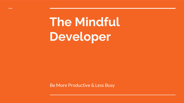 Fortunately, there’s another way. Instead of being busy, I can help you be more productive. I will walk you through some of the tools and techniques that I use on a daily basis to maintain and upgrade my skills in a world of ever changing technology, and, more importantly; to protect my sanity, be more present and remove stress and fear from my life.