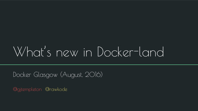 Guy & I will be walking you through all the latest developments in Docker Land, including Docker Engine 1.12, Docker Compose 1.8, and Docker for Mac and Windows.