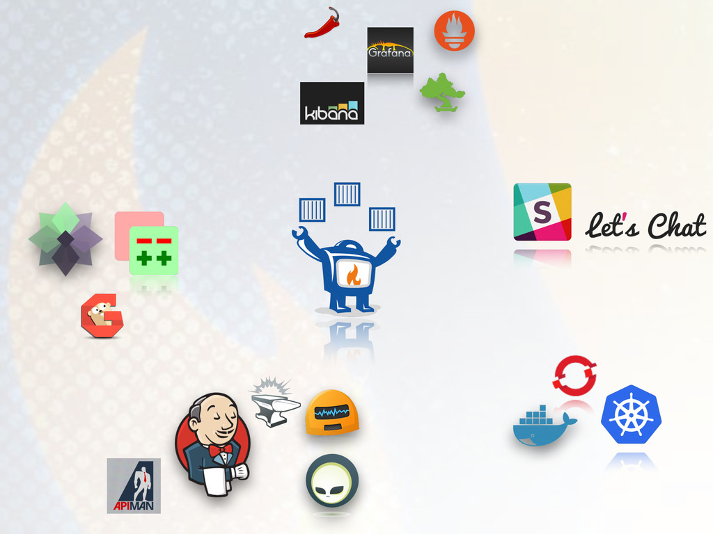 Kibana Grafana Jolokia Elasticsearch Prometheus Taiga Gerrit Jenkins Kubernetes docker