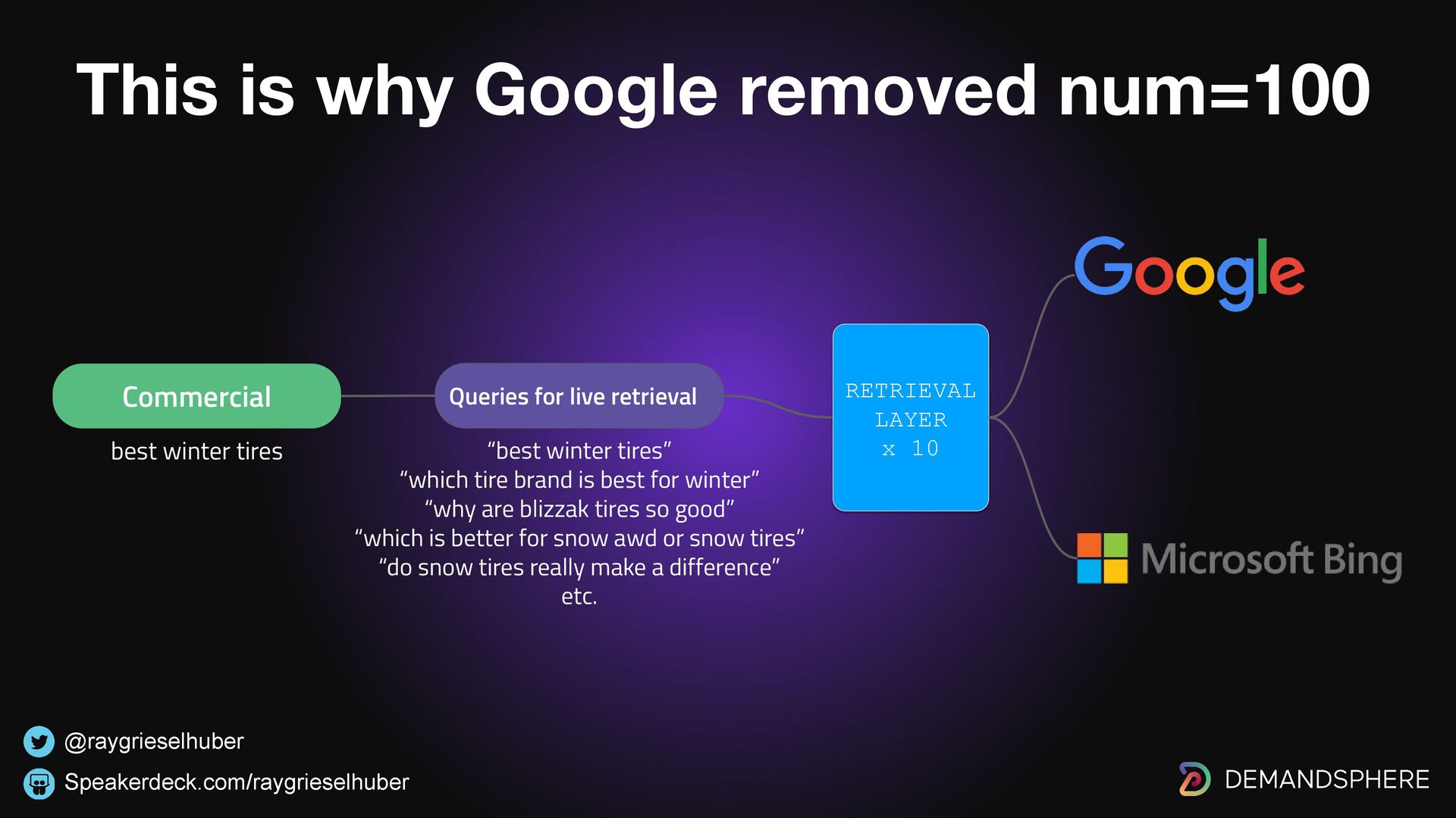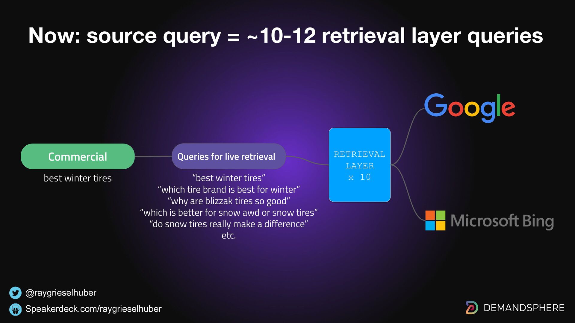 Commercial best winter tires Queries for live retrieval “best winter tires” “which tire brand is best for winter” “why are blizzak tires so good” “which is better for snow awd or snow tires” “do snow tires really make a difference” etc. RETRIEVAL LAYER x 10