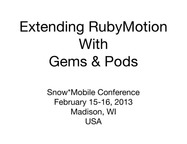 RubyMotion enables developers to write native iOS apps using the Ruby language. Developers can amplify the power of RubyMotion by using of some of the available libraries, packaged as Gems and Pods. This talk will demonstrate some of the more popular libraries, while highlighting some of the "gotchas". The first eight minutes will introduce RubyMotion for those who are unfamiliar with it. The remainder of the talk will feature demos of the libraries in action, live coding, and a generous helping of TDD. To get the most out of the talk, the audience member should have some experience programming iOS, Ruby, or both.