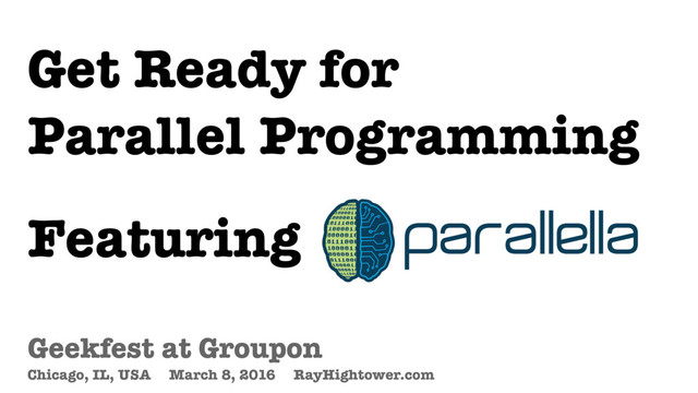 This talk is the sequel to Ray Hightower's Parallella presentation from 2015. For a quick intro, check out Part One: https://www.youtube.com/watch?v=BHZCCUEzK0s