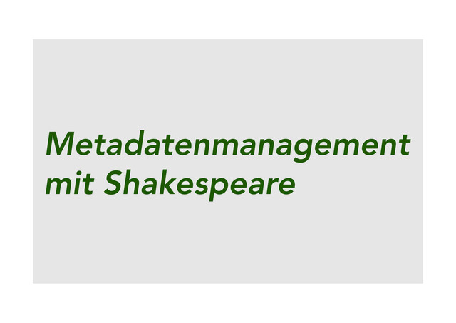 Vortrag bei der GIQMC 2013 in Bad Soden Vorstellung des freien Servers "Shakespeare" zum Metadatenmanagement.