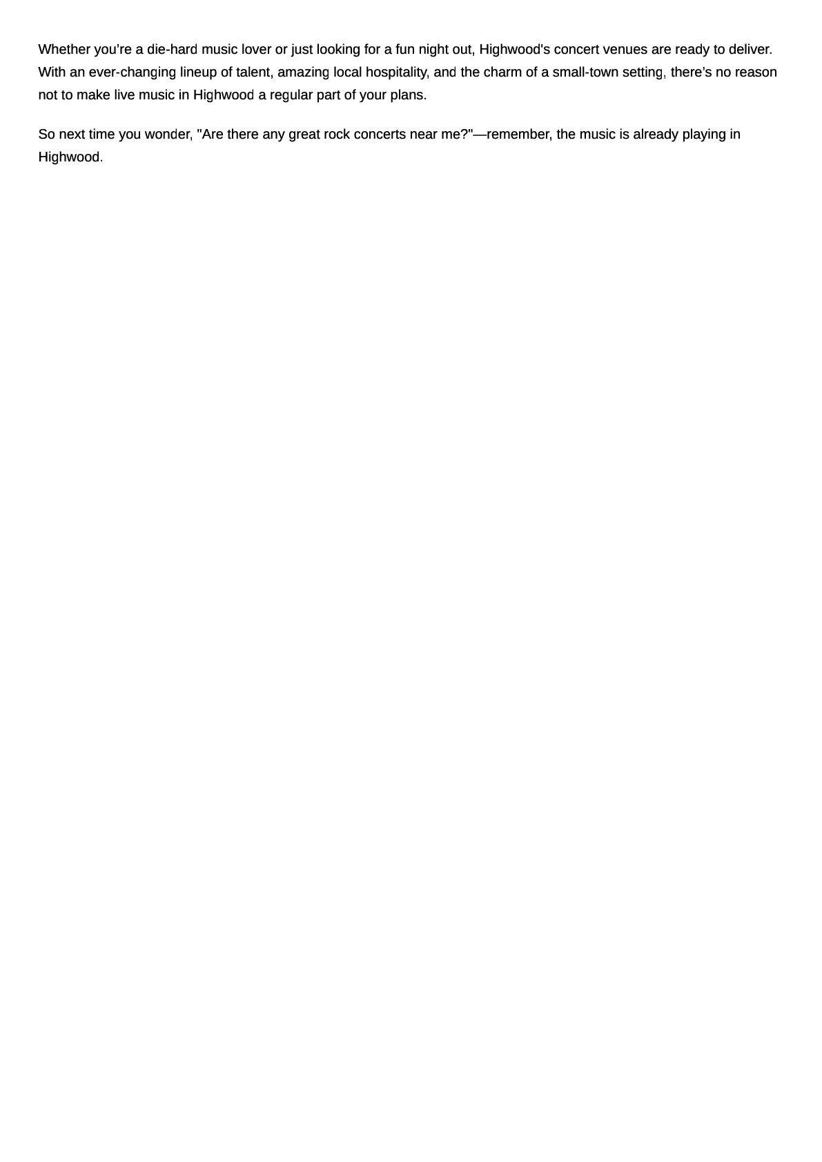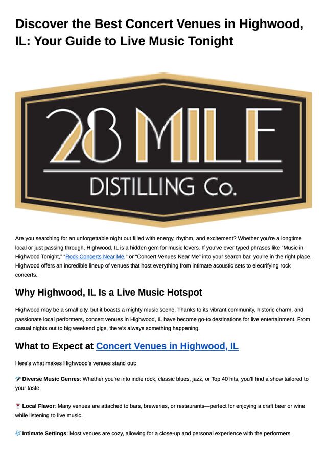 to Live Music Tonight Are you searching for an unforgettable night out filled with energy, rhythm, and excitement? Whether you're a longtime local or just passing through, Highwood, IL is a hidden gem for music lovers. If you've ever typed phrases like “Music in Highwood Tonight,” “Rock Concerts Near Me,” or “Concert Venues Near Me” into your search bar, you're in the right place. Highwood offers an incredible lineup of venues that host everything from intimate acoustic sets to electrifying rock concerts. Why Highwood, IL Is a Live Music Hotspot Highwood may be a small city, but it boasts a mighty music scene. Thanks to its vibrant community, historic charm, and passionate local performers, concert venues in Highwood, IL have become go-to destinations for live entertainment. From casual nights out to big weekend gigs, there’s always something happening. What to Expect at Concert Venues in Highwood, IL Here’s what makes Highwood's venues stand out: 🎤 Diverse Music Genres: Whether you're into indie rock, classic blues, jazz, or Top 40 hits, you’ll find a show tailored to your taste. 🍷 Local Flavor: Many venues are attached to bars, breweries, or restaurants—perfect for enjoying a craft beer or wine while listening to live music. 🎶 Intimate Settings: Most venues are cozy, allowing for a close-up and personal experience with the performers.