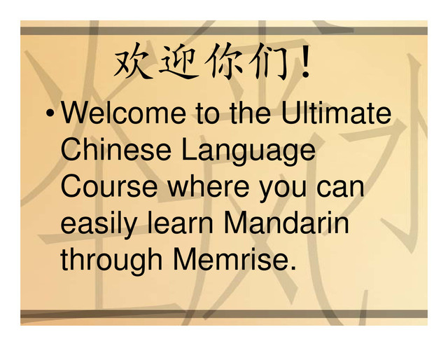 other Chinese courses in Memrise, this , course will help you learn grammar as well as do grammar as well as do activities as if you are in a activities as if you are in a classroom.