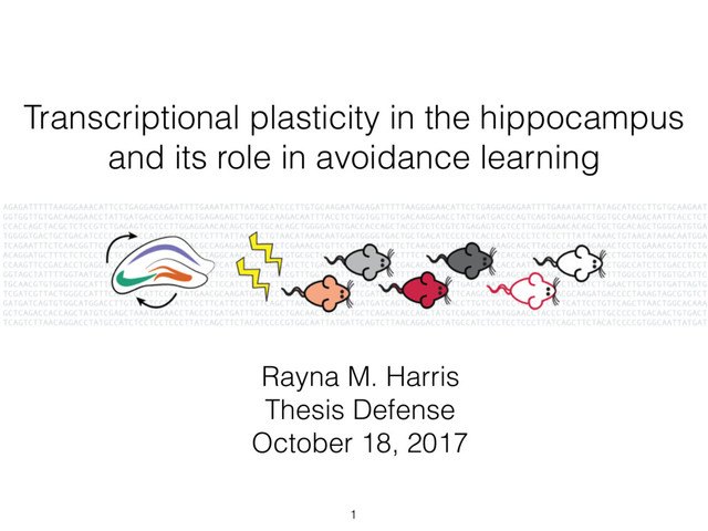 levels I created an open and reproducible analysis workflow I found a striking pattern of transcriptional activity in DG in response to conditioned avoidance Transcription in the hippocampus is both plastic and robust Summary of my thesis research