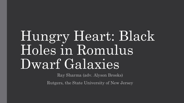 galaxies •We can make predictions •Black holes matter in dwarf galaxies (but how low mass?) ⚫ BHs increase galaxy size at low masses ⚫ BHs do not change gas fraction ⚫ BHs decrease central density •Sharma+ (2018) in prep, stay tuned!
