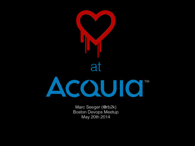 A quick presentation on how we handled Heartbleed at Acquia. Held at a DevOps Boston meetup.