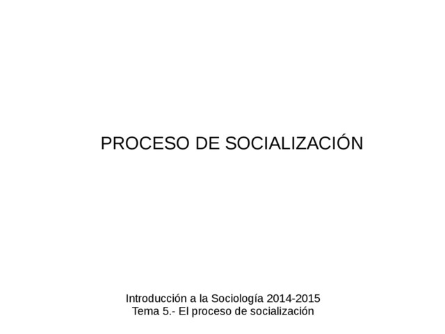 socialización • Socialización como construcción social de la realidad social Proceso por el cual las personas crean y dan forma a la realidad mediante la interacción social (Berger y Luckmann, La construcción social de la realdiad)