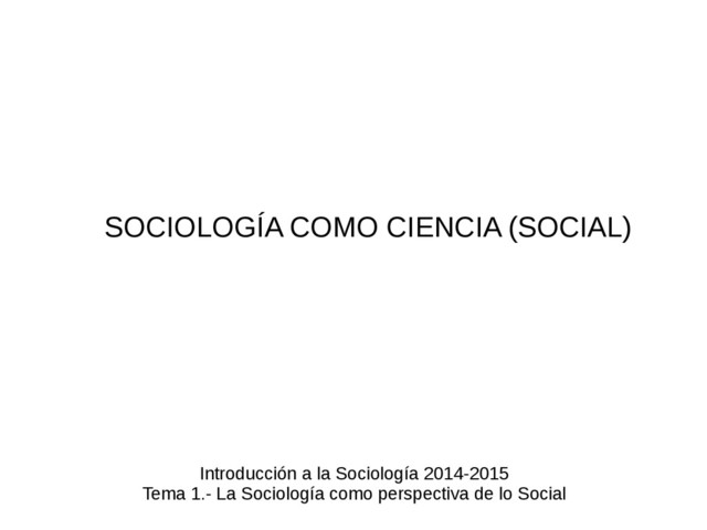 perspectiva de lo Social “La Sociología es una ciencia porque reúne las condiciones mínimas de empirismo, teoría, apertura, neutralidad ética y capacidad crítica que de toda ciencia se exigen” (S. Giner)