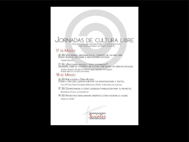 Jornadas de Cultura Libre. 17 de marzo de 2014. ISU. Fac. CC. Políticas y Sociología