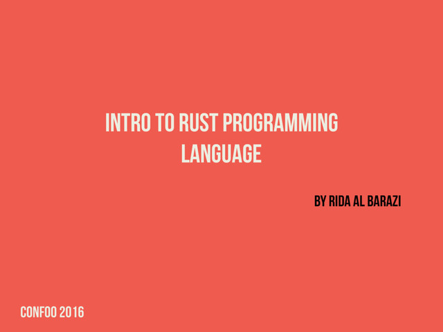 Rust is a systems programming language focused on three goals: safety, speed, and concurrency. In this talk, you will get a high-level overview of the language, its syntax and semantics, and some code examples.