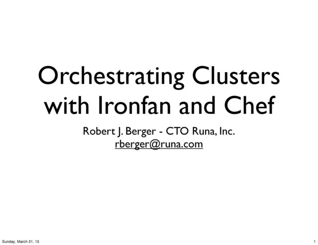 How you can represent your complete cluster with one config file and have it deployed to Cloud or Bare Metal. Infochmimps’ Ironfan builds on Opscode Chef to allow you to specify and orchestrate all flavors of your cluster’s deployment, monitoring and growth. Not just the core HBase/HDFS/MapReduce/Hive/Flume, etc. but all the elements including web / app servers, mysql, redis, rabbitmq and whatever other servers needed to implement your service. These same tools can manage variations for development, staging, R&D as well as the target “rendering” to various Clouds, Bare Metal or even Vagrant VMs.