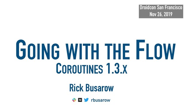 Let’s talk reactive coroutines. The coroutines 1.3.0 release graduated Flow to stable, and introduced breaking changes to the Channel api.