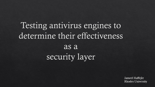 Testing Antivirus Engines To determine their effectiveness as a security layer