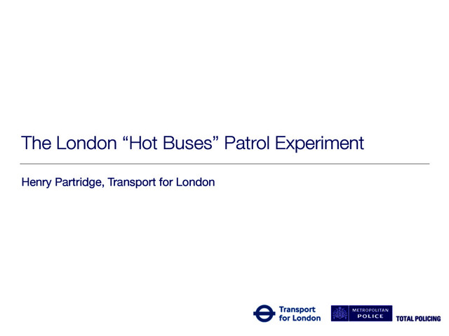 an effective crime prevention strategy (Braga et al. 2012) 15 minutes is optimal duration for police presence at hot spots (Koper 1995) Operation Beck • assessed the effect of police presence at ‘hot’ London Underground platforms • recorded a 20% reduction in calls-for service at the treatment platforms compared with the control platforms (Ariel & Sherman 2014)