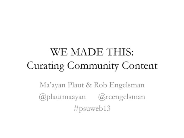 WE MADE THIS: Curating Community Content Ma’ayan Plaut & Rob