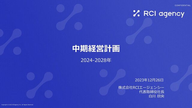 © 2023 RCIagency Inc. All Rights Reserved. 中期経営計画 2024-2028年 2023年12月26日 株式会社RCIエージェンシー 代表取締役社長 白川 欣央