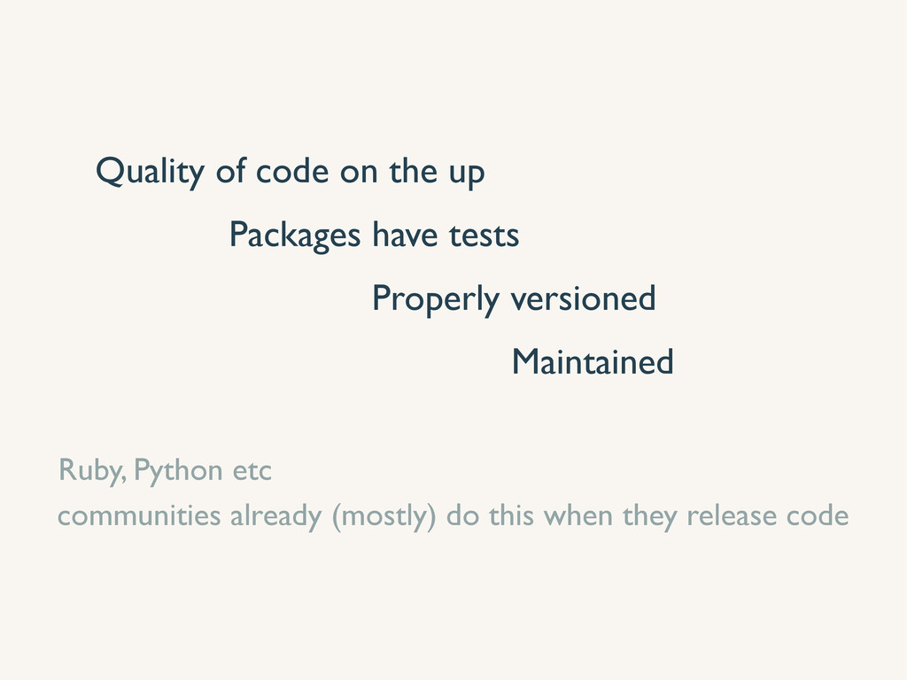 the up Ruby, Python etc communities already (mostly) do this when they release code