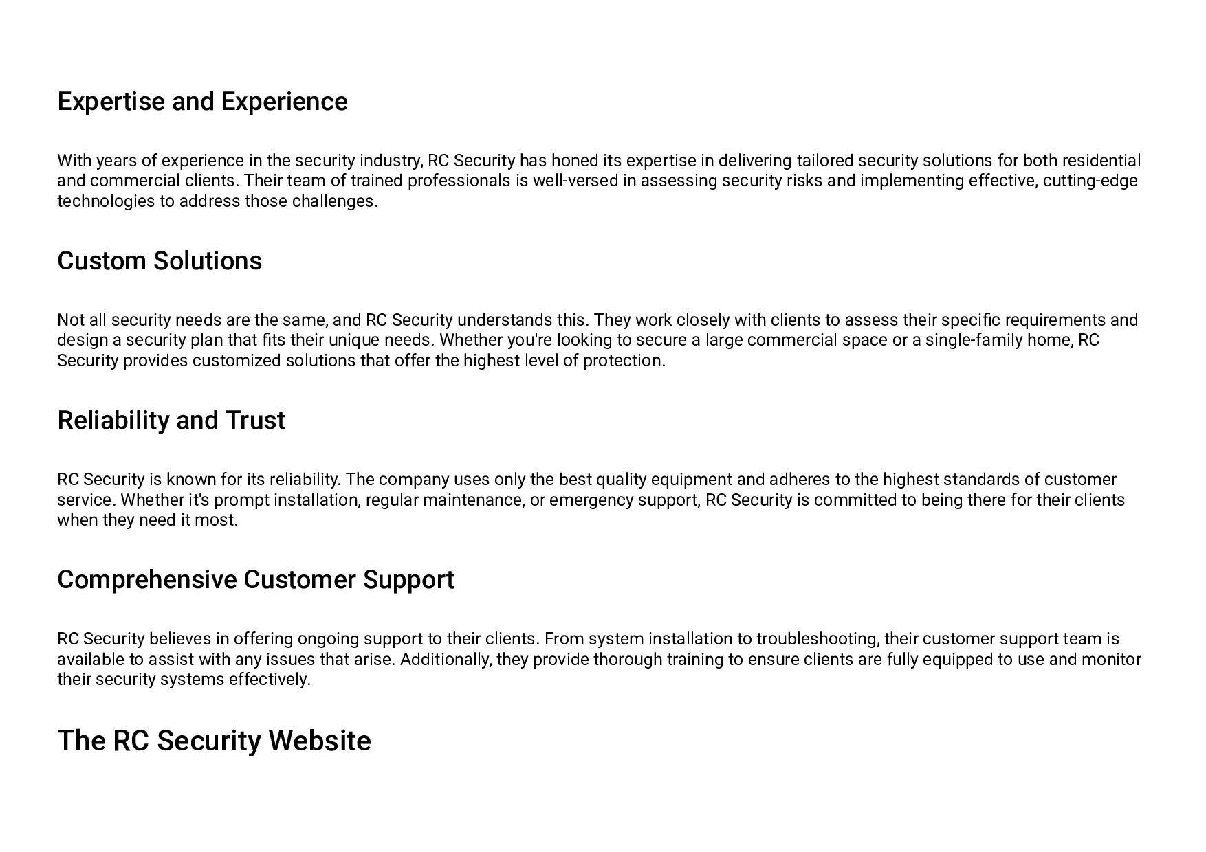 What sets RC Security apart is its focus on providing customized security solutions that address the unique challenges each client faces. Whether it's protecting valuable assets, ensuring employee safety, or enhancing the security of your home, RC Security ensures that its systems are scalable, adaptable, and effective.
