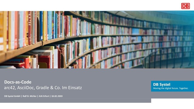 Der Vortrag zeigt, wie Du die Qualität Deiner Dokumentation erhöhst und gleichzeitig den Aufwand zur Pflege reduzierst, indem Du Deine Dokumentation genauso wie Deinen Code verwaltest und in den Build integrierst. Anhand des Beispiels einer Architekturdokumentation, zeigt Ralf, wie Du mit dem arc42-Template im AsciiDoc-Format und Gradle als Build-Tool einfach Diagramme in Ihre Dokumentation integrierst, Stakeholder-spezifische Dokumente erzeugst und verschiedene Ausgabeformate generierst. Reviewfähige PDF-Dokumente? Publishing nach Confluence? Integration einer Präsentation? Alles kein Problem! Einige Teile der Doku kannst Du sogar automatisiert testen!