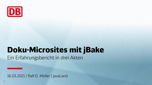 In diesem Vortrag zeige ich, warum sich jBake gerade für Java-Projekte ausgezeichnet eignet um für jedes Projekte mit wenig Aufwand eine schicke Microsite zu erstellen - vom Plain-Text-Dokument bis zur veröffentlichten Website mit TLS.
