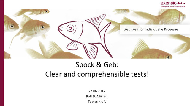 für alle! Vortrag, Beispiele Source Code http://rdmueller.github.io/etka15/ • Teil 1 : Mit Mr. Spock beim Testeinsatz, Javamagazin (12/2014) Teil 2 : Mr. Spock ruft Geb, Javamagazin (01/2015) http://www.exensio.de/articles/