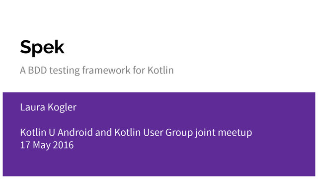 Spek A BDD testing framework for Kotlin Laura Kogler Kotlin
