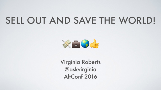 Bio: Virginia Roberts went from independent entrepreneur to being a Microsoft Program Manager... and she LOVES it, because it allows her to be an even more effective advocate for diversity in tech. She'll share how you can make a positive impact on the world through gainful employment even at not-so-indie companies, and how having a less hipster-cool day job can actually empower you to do more good in the world.