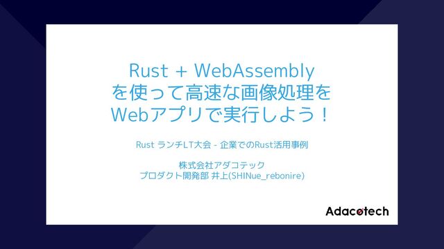 image_processing.fbs .fbsファイルによってデータのスキーマ(どのデータがどの順番に並ぶか)を定義し、 flatcで各言語(C++, Rust, TypeScriptなど)のインタフェース用コードを書き出すことができる。 sample_app ├flatbuffers │└image_processing.fbs └rust ├web │ ├src │ │ ├image_processing_generated.rs │ │ └lib.rs │ └Cargo.toml ├core_lib │ ├src │ │ └lib.rs │ └Cargo.toml └Cargo.toml --tsとすればTypeScript用の インタフェース用コードが書き出される