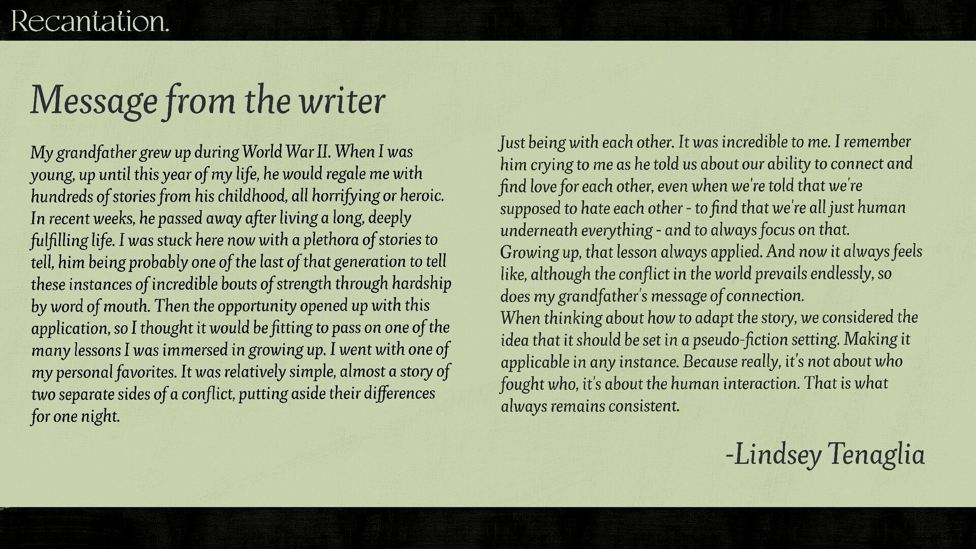 Recantation - Pitch Bible