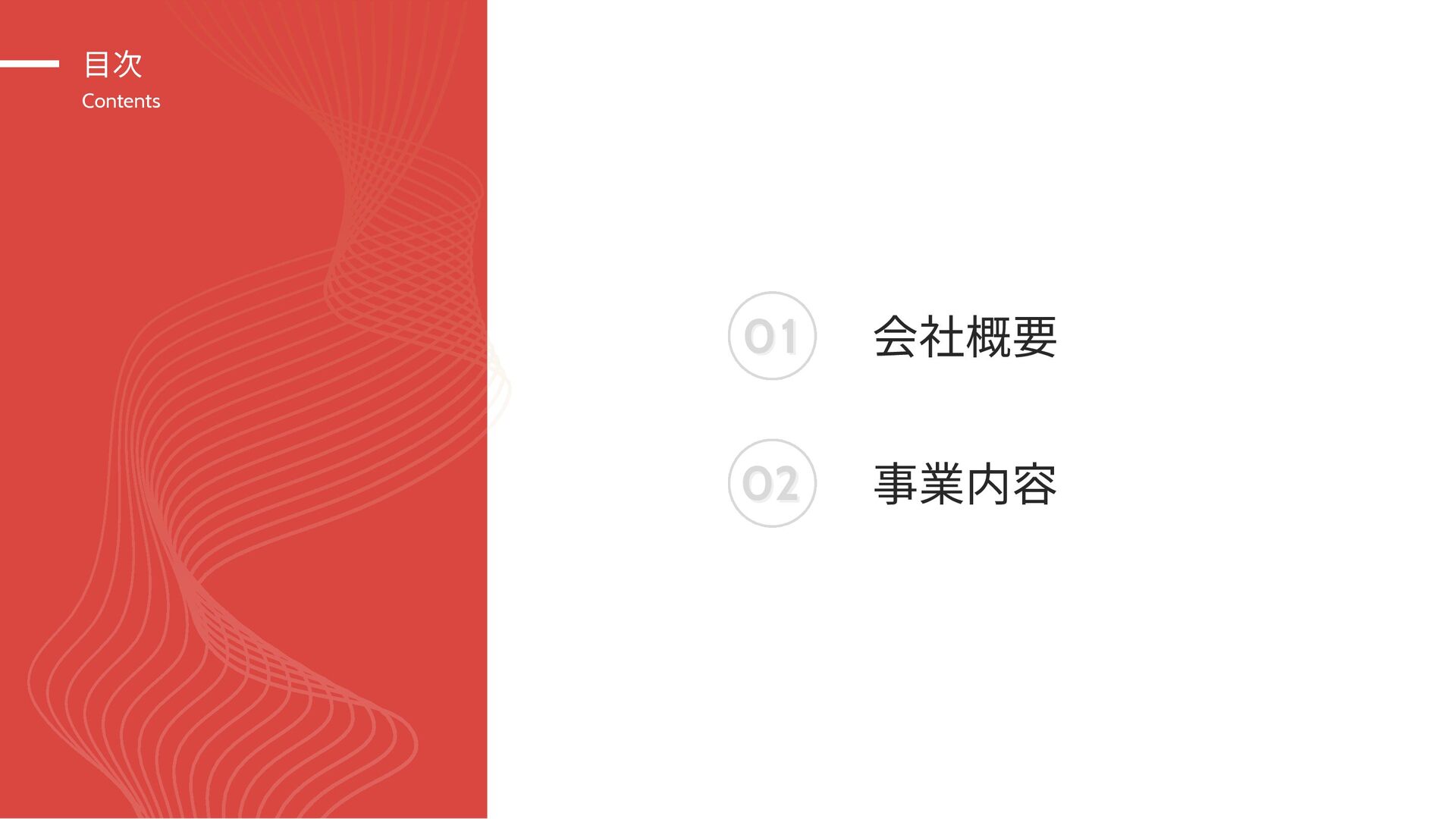 目次 Contents 01 01 02 02 会社概要 事業内容