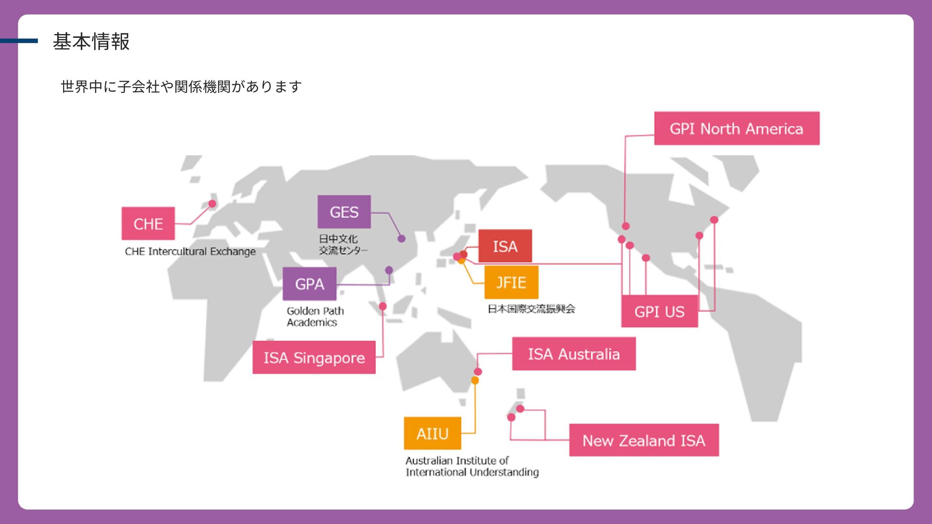 基本情報 世界中に子会社や関係機関があります