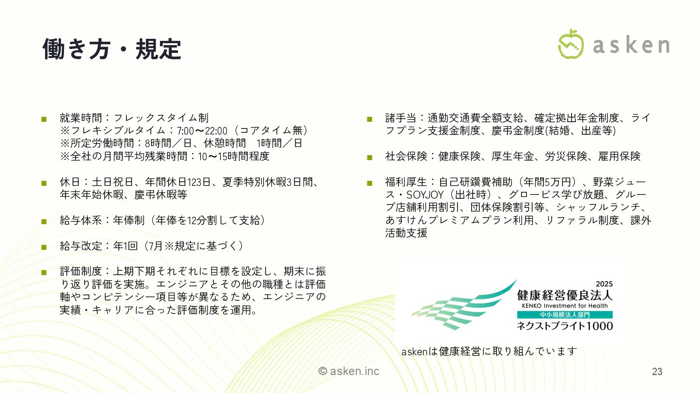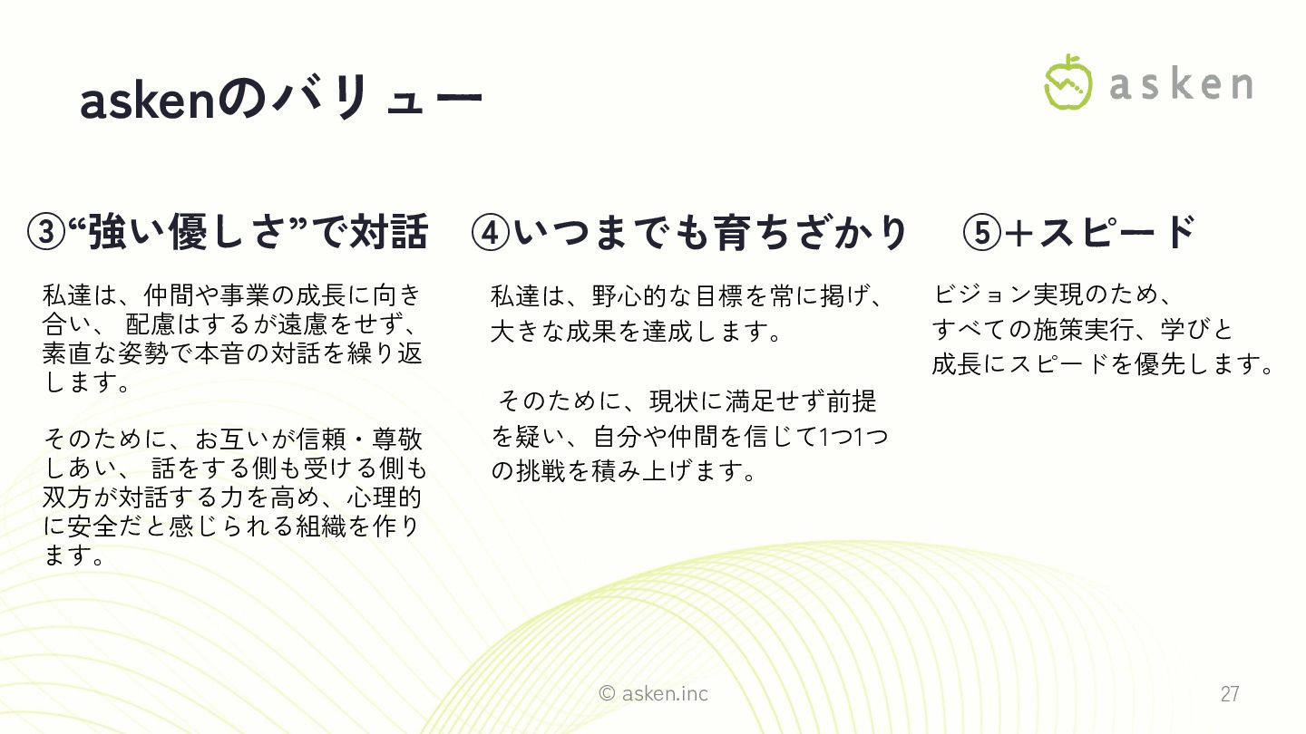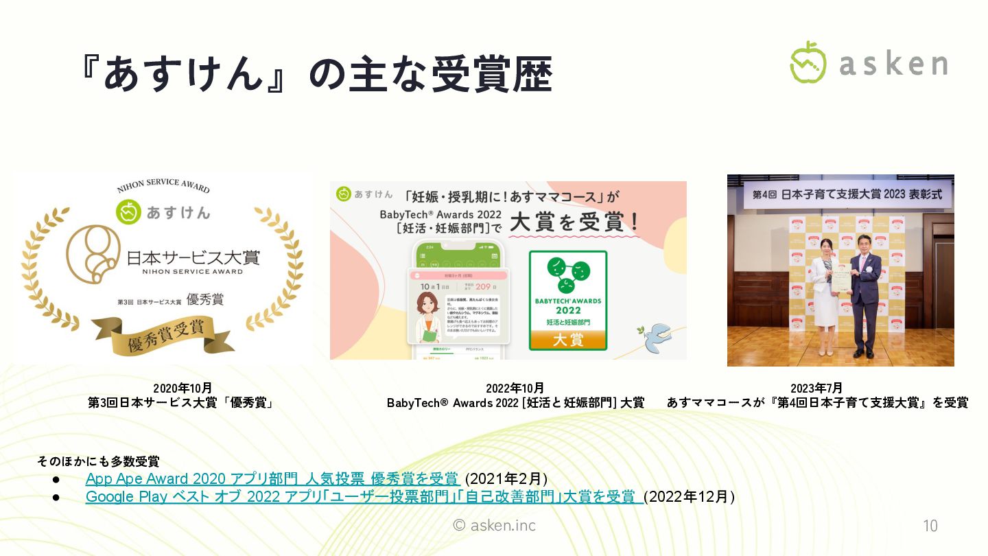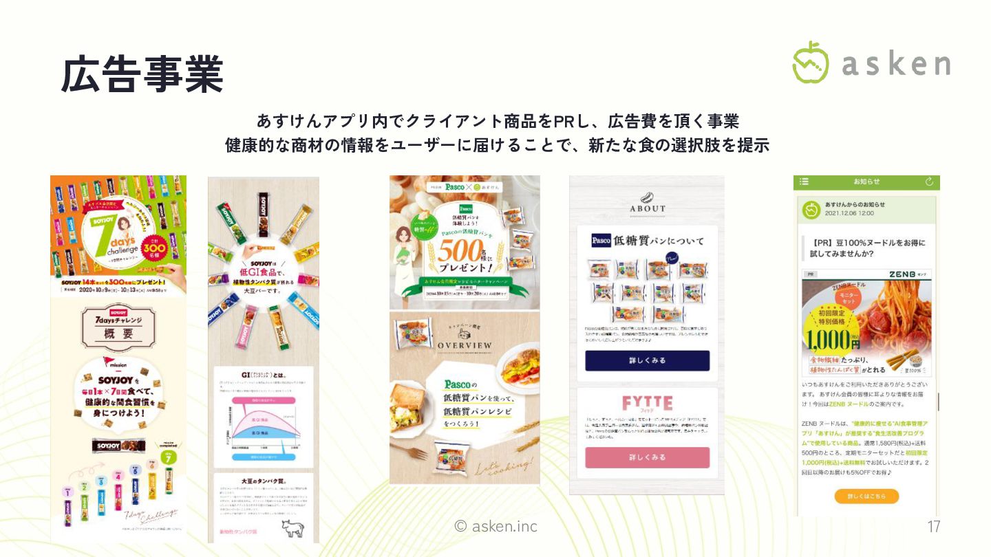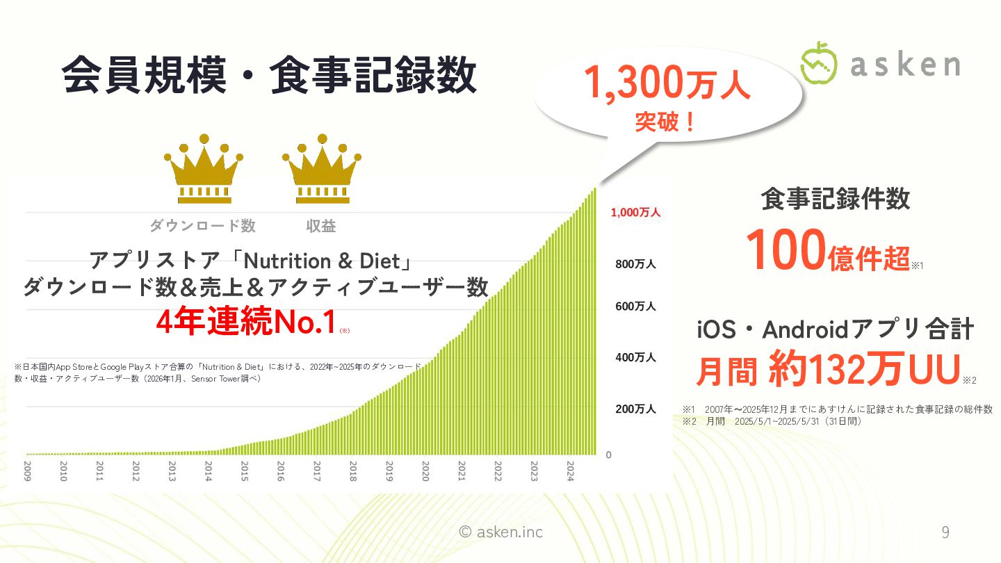 ITベンチャー・外資メーカー・ コンサルティング会社での経 験を経て、2007年に株式会 社askenを設立。企画・要件 定義・マーケティング・事業計 画策定などを幅広く担当し た。 現在は主に経営戦略立案・ア ライアンス・海外展開・データ サイエンスなどの分野を担 当。 ヘルスケアIT関連のセミナー ・カンファレンス等での講演多 数。 女子栄養大学栄養学部卒業 後、大手フードサービス企業 に入社。100社以上の企業で 健康アドバイザーを務めた 後、2007年、新規事業の立ち 上げメンバーとして株式会社 askenに参画し、以後『あすけ ん』の企画・コンテンツ制作・ 開発に携わる。現在、株式会 社asken取締役としてあすけ ん事業統括責任者を務める。