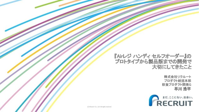 マスタ タイトルの書式設定 1 株式会社リクルート プロダクト統括本部 飲食プロダクト開発G 早川 浩平 『Airレジ ハンディ