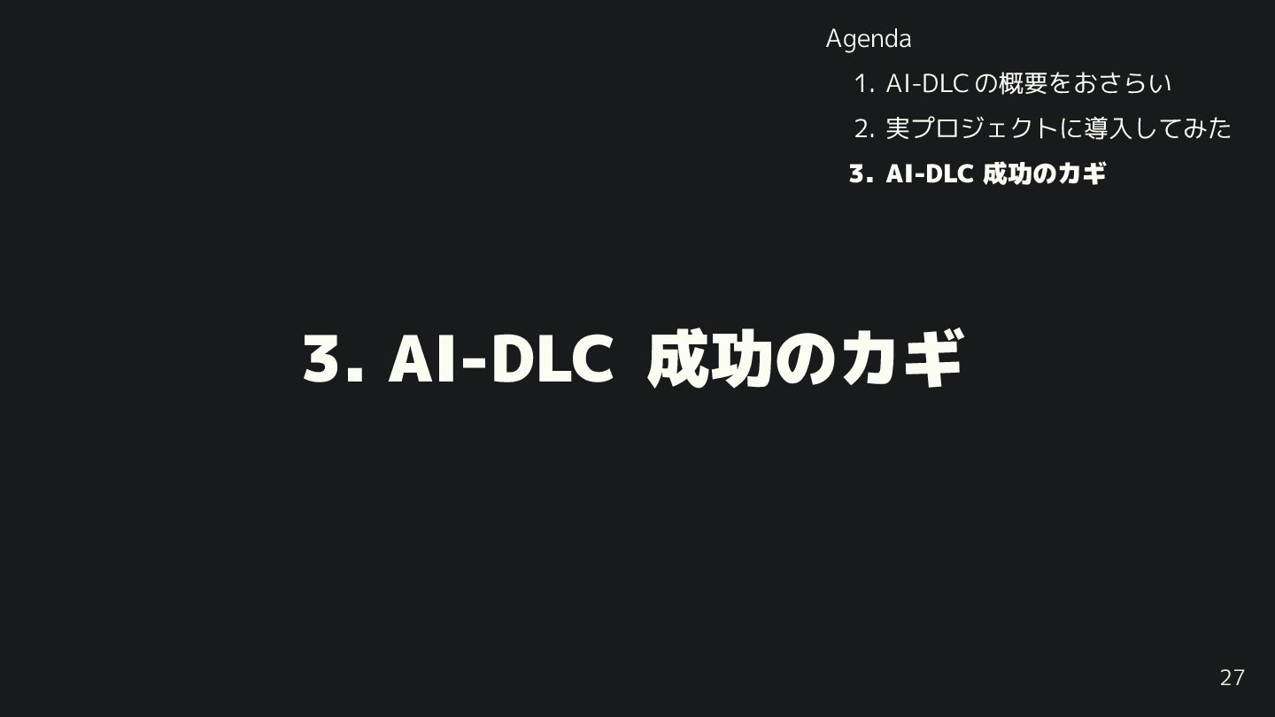 2. 実プロジェクトに導入してみた 3. AI-DLC 成功のカギ